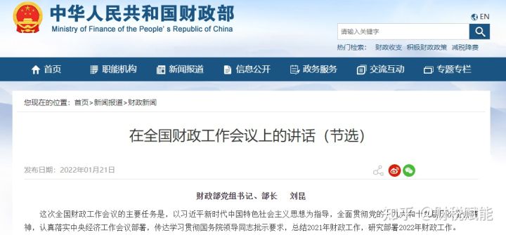 2022年1月21日,財(cái)政部黨組書記、部長劉昆在全國財(cái)政工作會議上的講話: