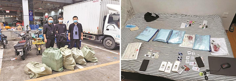 福田分局在抓獲1名參與涉案贓款取現(xiàn)的嫌疑人后,經(jīng)連夜審訊又挖出2名為電信詐騙犯罪提供對(duì)公賬戶以及賣國家機(jī)關(guān)公文印章的“幕后上家”;同時(shí),還在福田區(qū)抓獲一名專門幫助詐騙分子收卡、送卡的快遞行業(yè)“內(nèi)鬼”(某快遞公司福田村代理點(diǎn)負(fù)責(zé)人趙某光),專案組民警據(jù)其供述雷霆出擊,抓獲其上家邱某翔、送貨司機(jī)王某龍二人,該二人對(duì)受境外在逃人員林某某指使,將全國各地收購的個(gè)人銀行賬戶和對(duì)公賬戶通過趙某光轉(zhuǎn)運(yùn)至境外,用于電詐、網(wǎng)絡(luò)賭博、洗錢等違法犯罪行為供認(rèn)不諱。